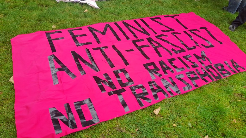 In a glorious colourful display of solidarity, a community mobilisation of 150-200 trans people, trans allies and people who just don’t like far-right grifters speaking in their town centre completely surrounded the meagre crowd of 50 who had assembled to listen to her bigotry. Brighton Antifascists and Trans Liberation Front Brighton collaborated together at very short notice to pull off an example of mass community mobilisation at its best, seeing an active and empowered crowd spontaneously working together to a run the haters out of town.