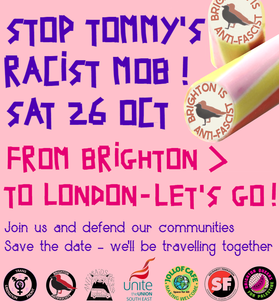 These far right rallies in the capital pose a direct threat to us and our communities back home. Just as community defence networks formed across the country to mobilise against the racist riots, an autonomous antifascist mobilisation on October 26th will ensure Tommy’s next far right day out will not go unopposed.